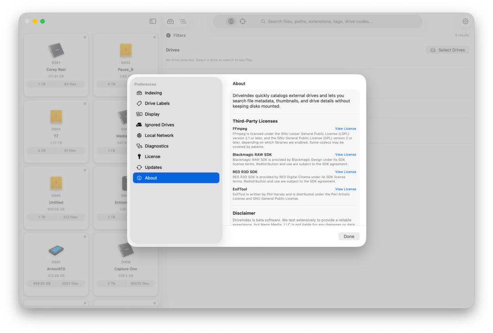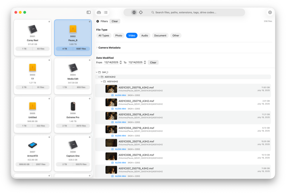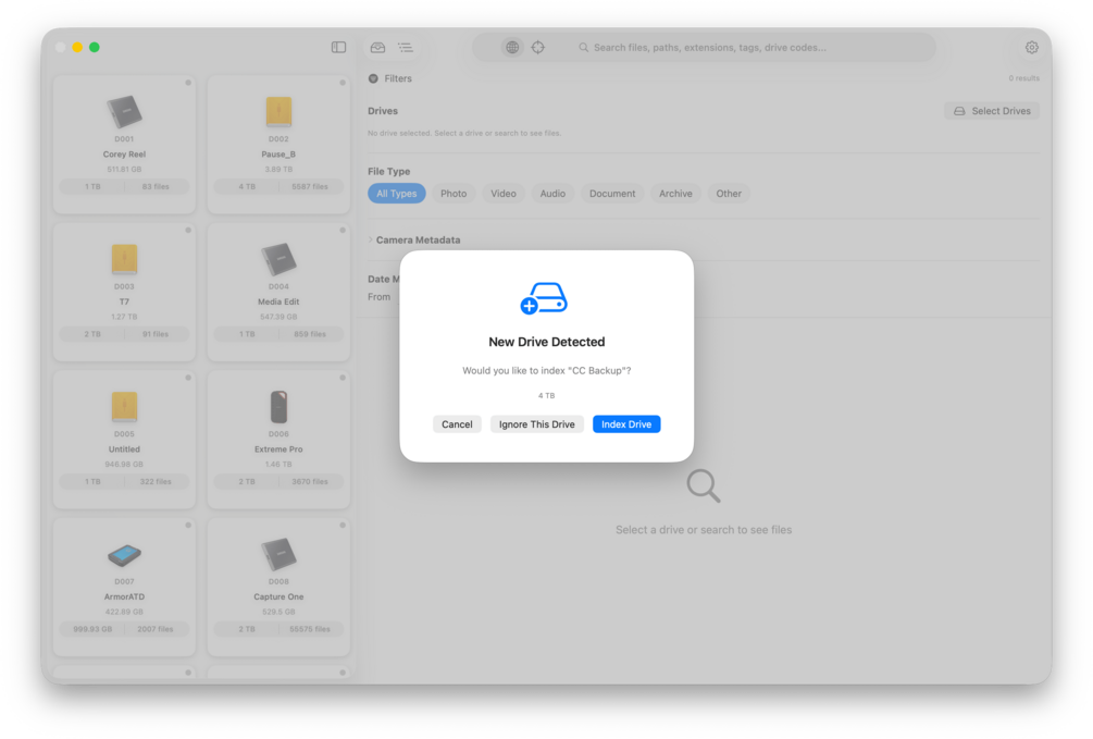 DriveIndex helps you organize, search, and manage your media drives with powerful indexing and advanced metadata extraction. Built for filmmakers, photographers, and media professionals.
